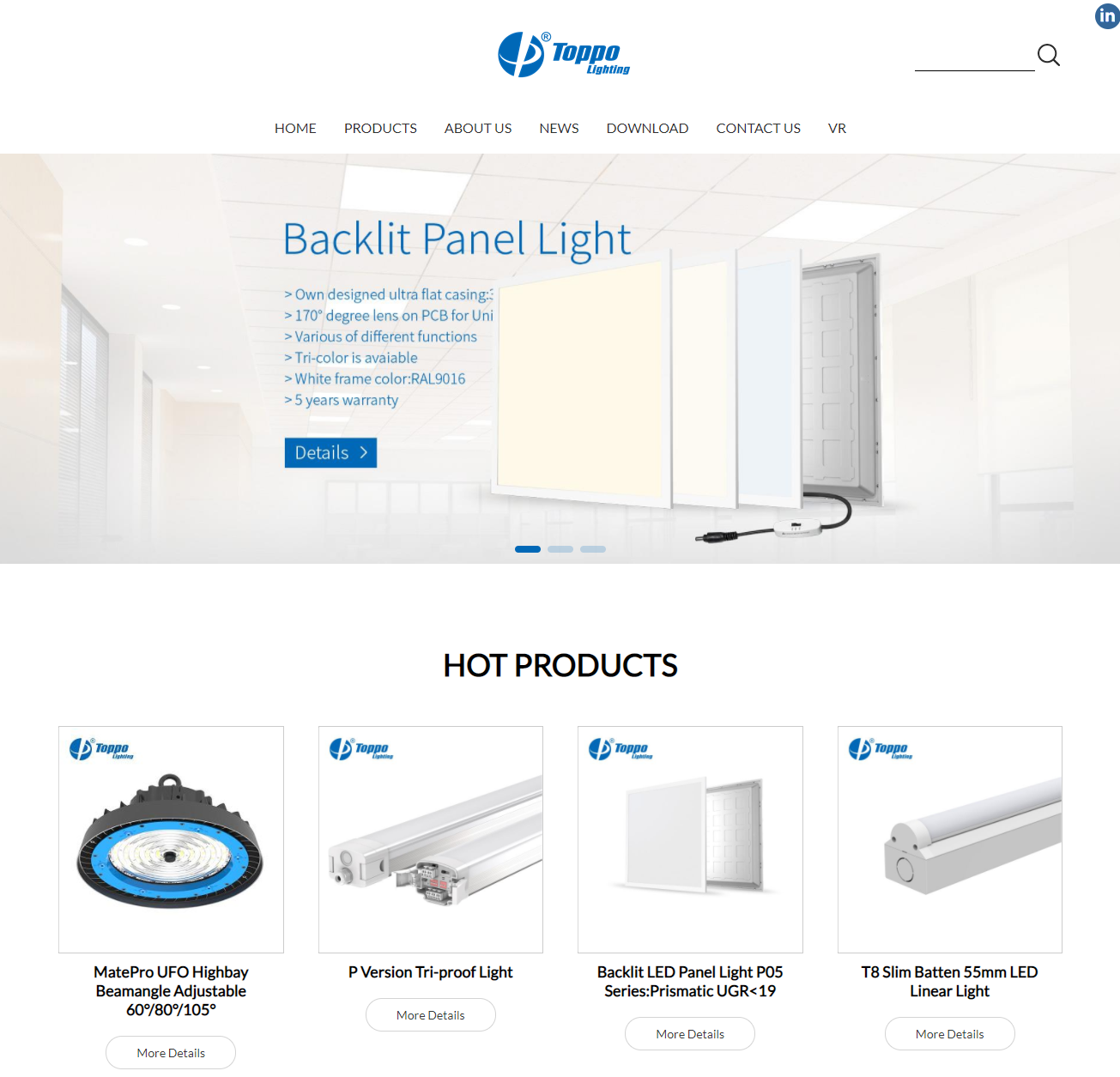 拓普照明有限公司是一家領先的ISO認證制造商,專門從事開發和生產最先進的LED照明產品。十多年來,我們正在為世界各地的各種市場開發和制造標準化和專業的燈具。